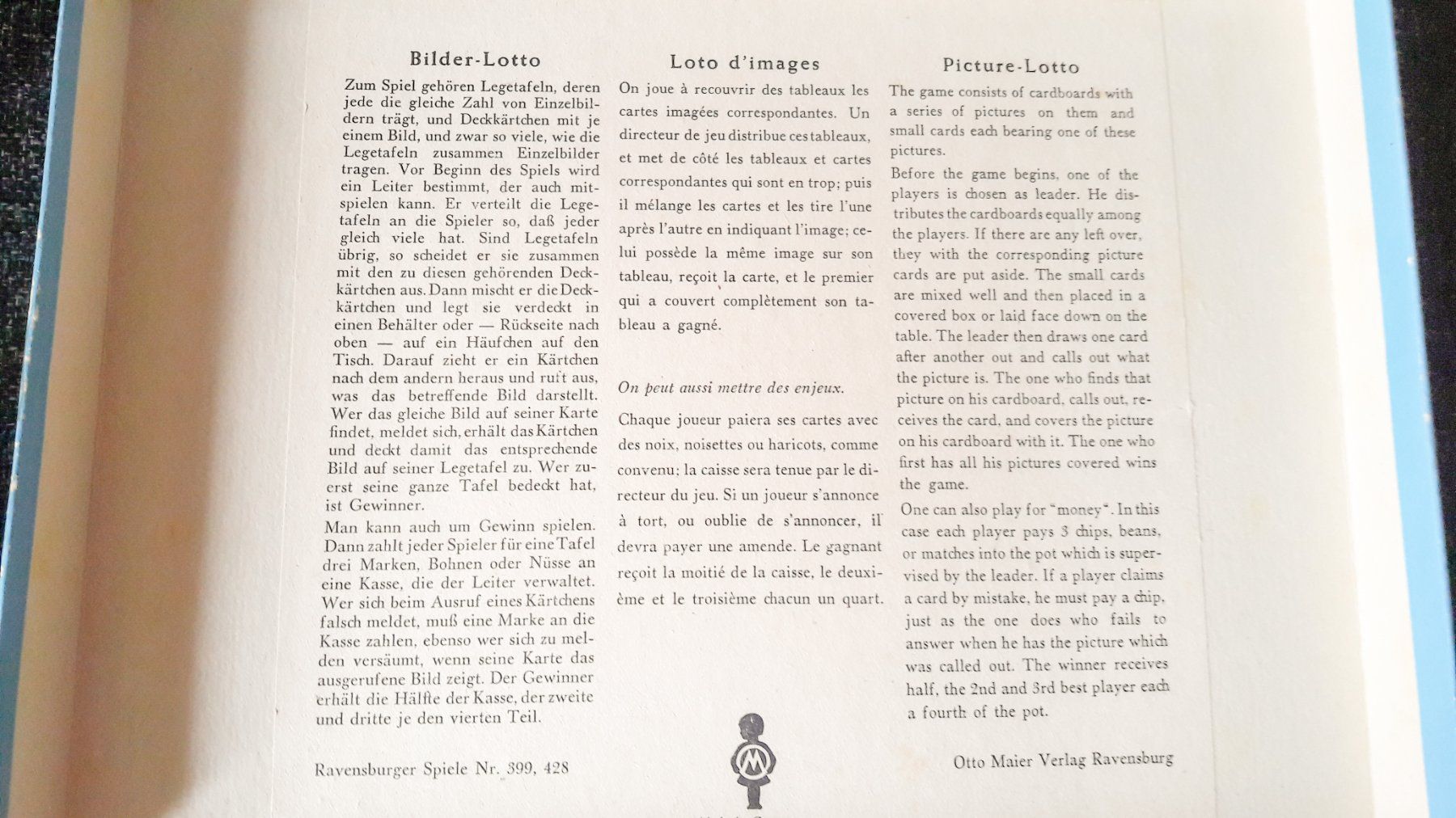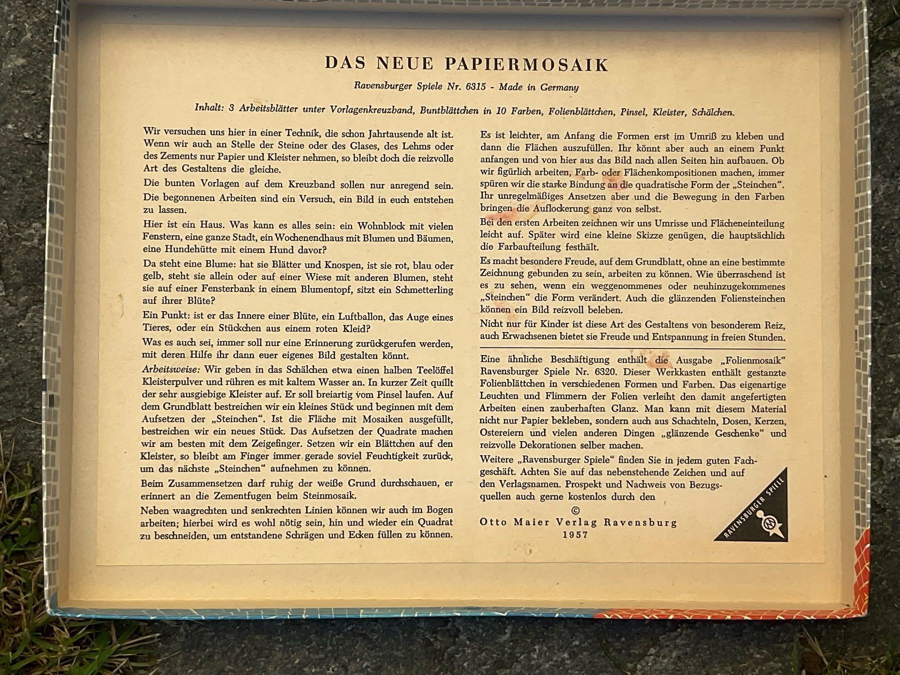 - ↑ a b c RMW: Bücher für den Weihnachtstisch – Beschäftigungsspiele in Das Ostpreußenblatt Jahrgang 12, Folge 49, Seite 7 vom 9. Dezember 1961 auf archiv.preussische-allgemeine.de, abgerufen am 9. Dezember 2024